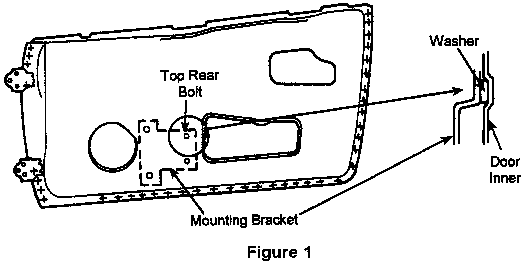 4. Insert one washer P/N MB140593 between the regulator mounting bracket and door inner panel. Center the washer over the bolt opening (Figure 1).