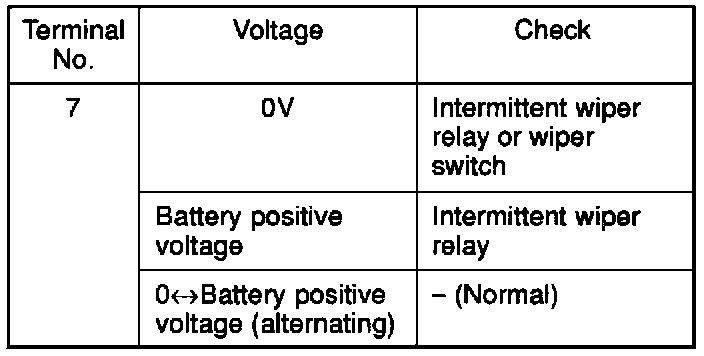 - Check terminal voltage of steering-column switch (with a built-in intermittent wiper relay) with the intermittent wiper relay energized.
