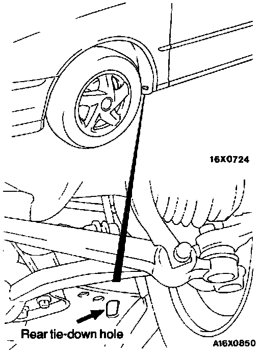 4. Attach a chain or wire to the rear tie-down holes. Secure the end of the wire or chain.