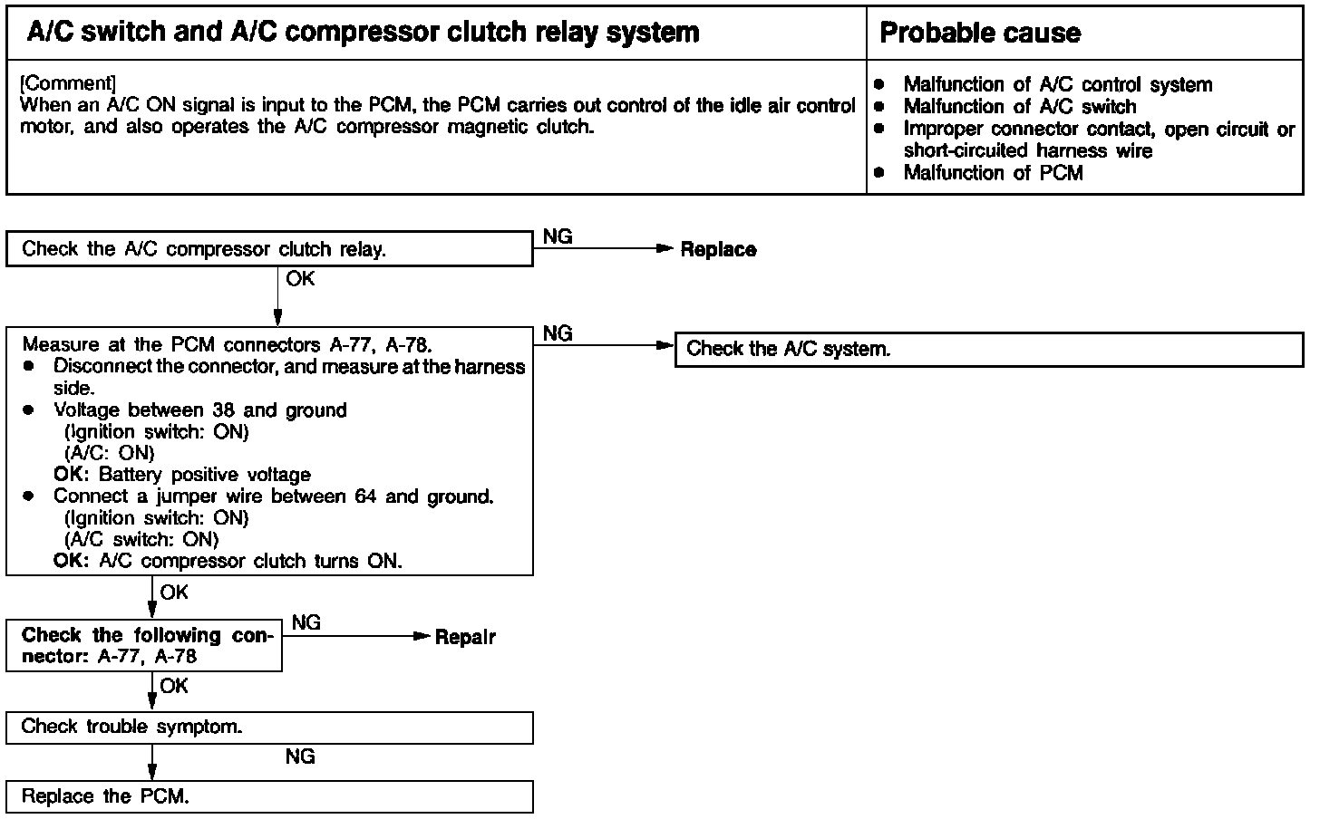Symptom: A/C switch and A/C compressor clutch relay system