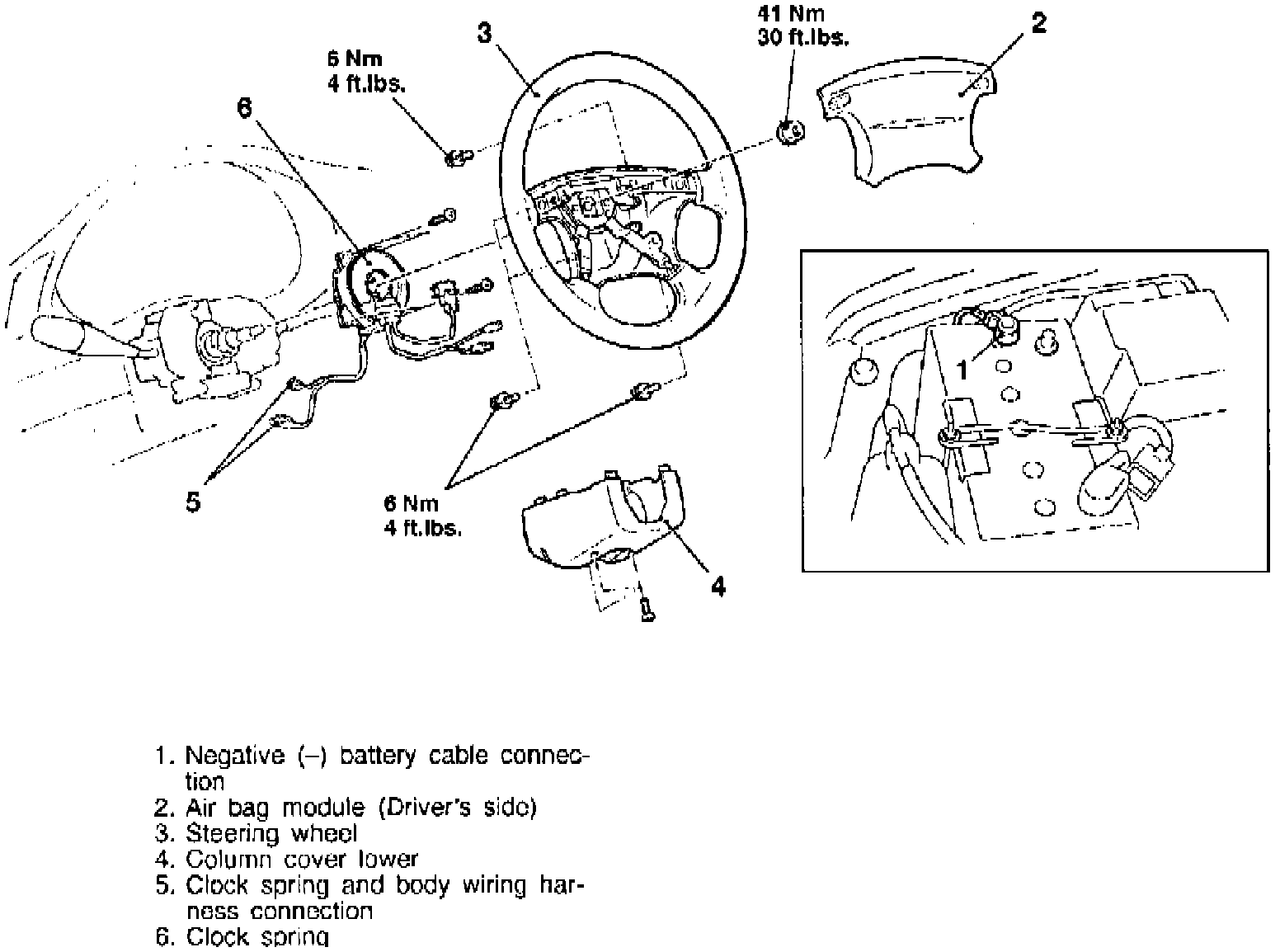 6. Reverse procedure to install. Torque steering wheel nut to 30 ft-lbs.