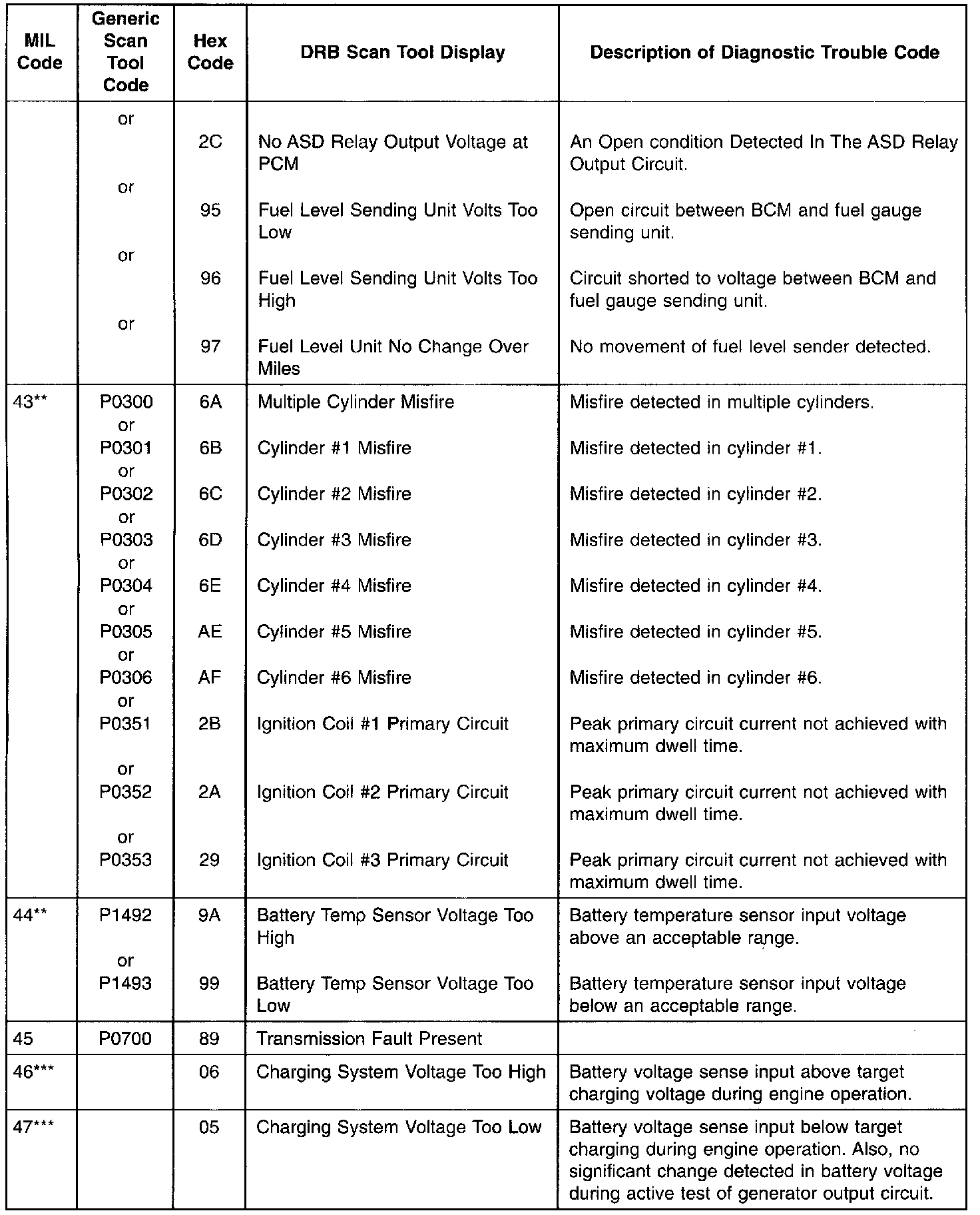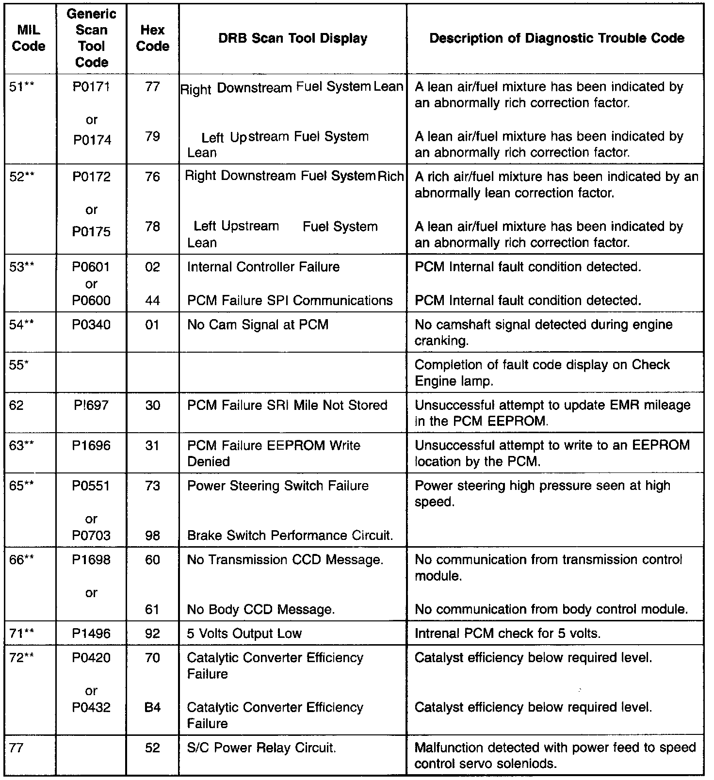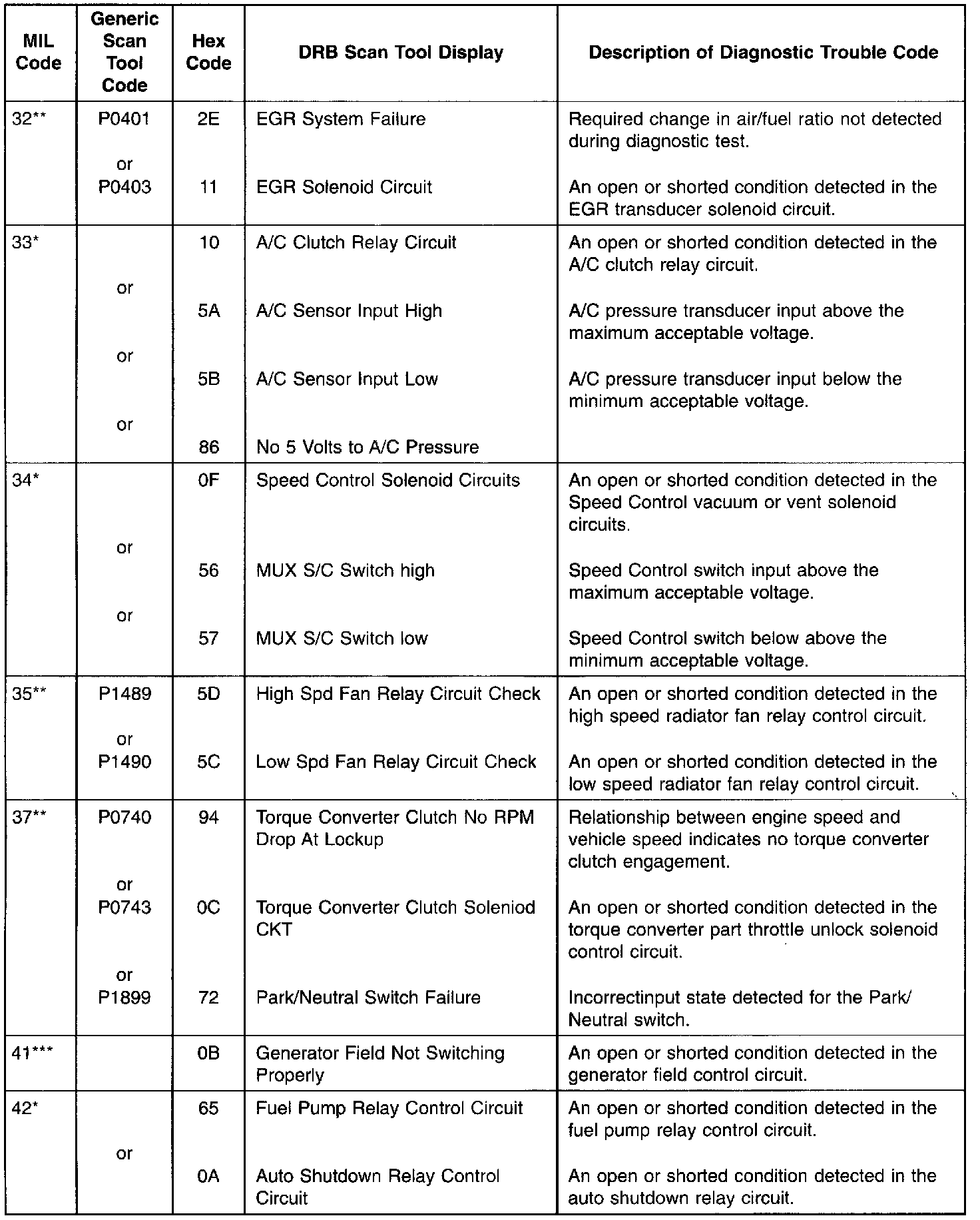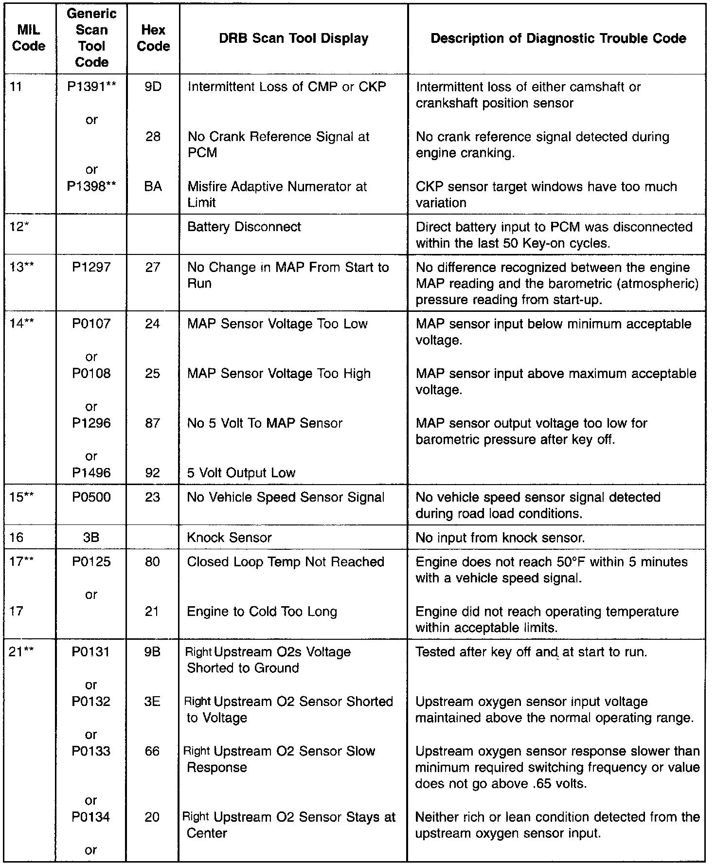 * Check Engine Lamp (MIL) will not illuminate if this Diagnostic Trouble Code was recorded. Cycle Ignition key as described in manual and observe code flashed by Check Engine lamp.