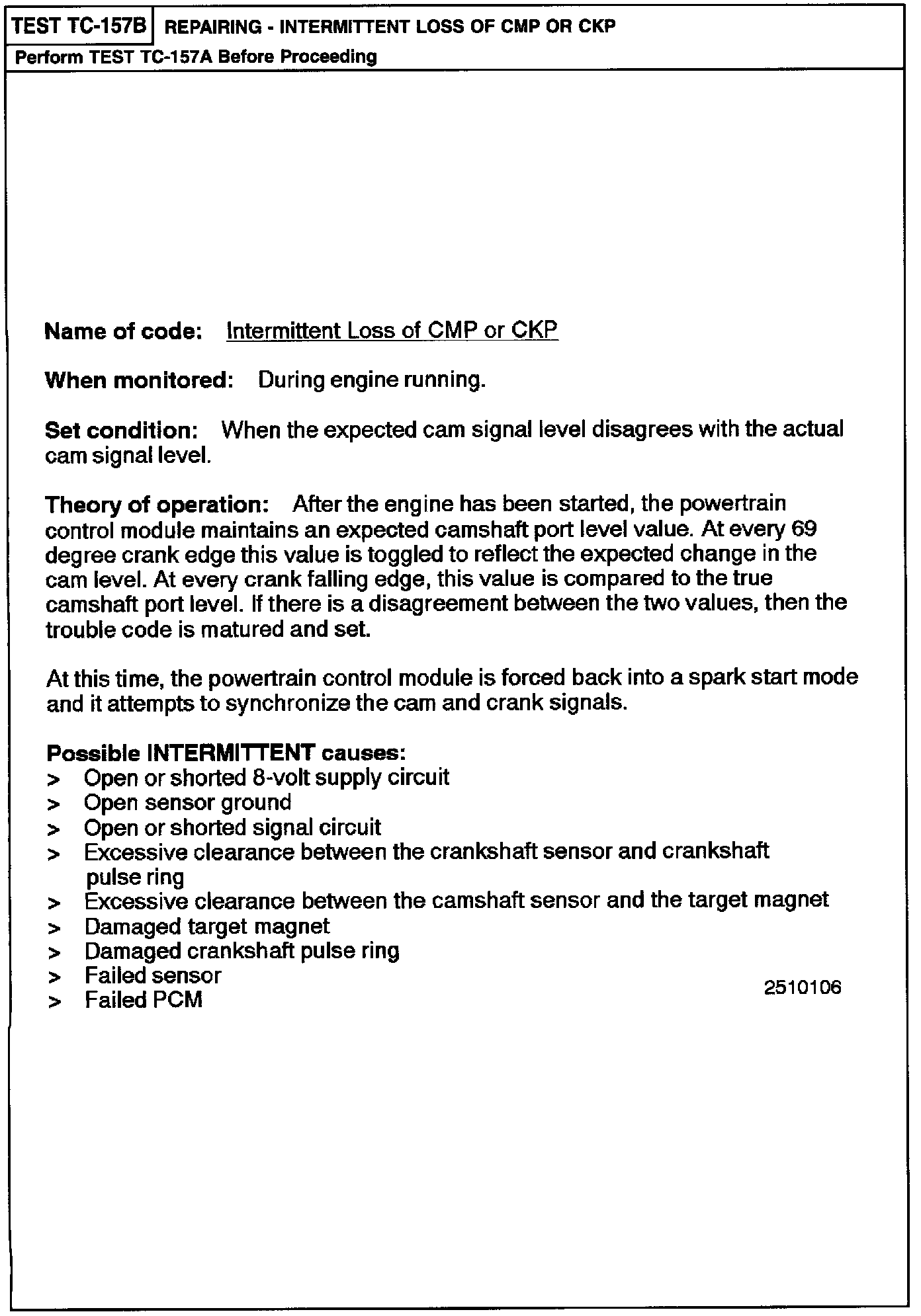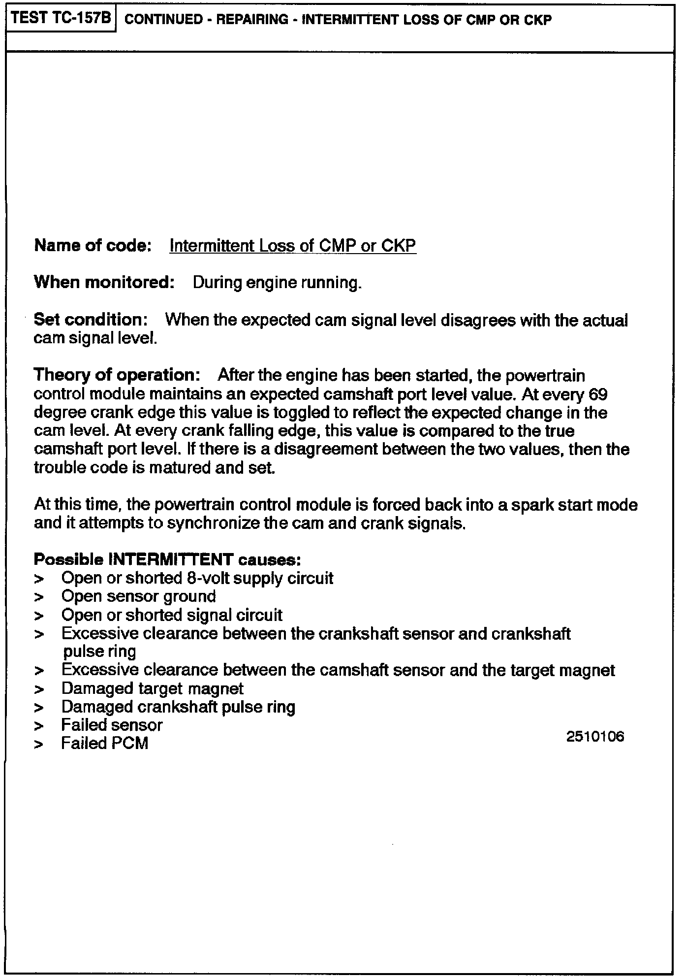 TC-157B Intermittent Loss of CMP or CKP