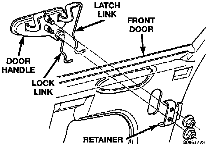 3. Disengage clips holding latch release link and lock link to door latch.