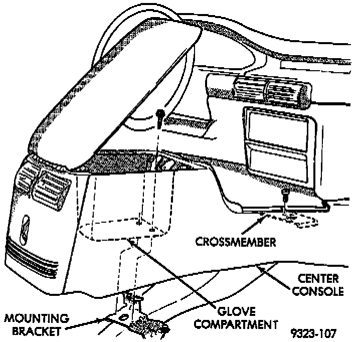 2. Install screws to hold bottom of glove compartment to rear mounting bracket.