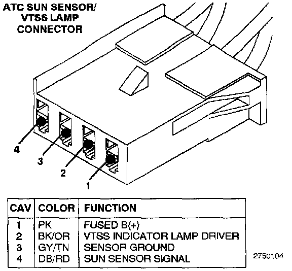 ATC Sun Sensor/Vehicle Theft Security System (VTSS) Lamp Connector: