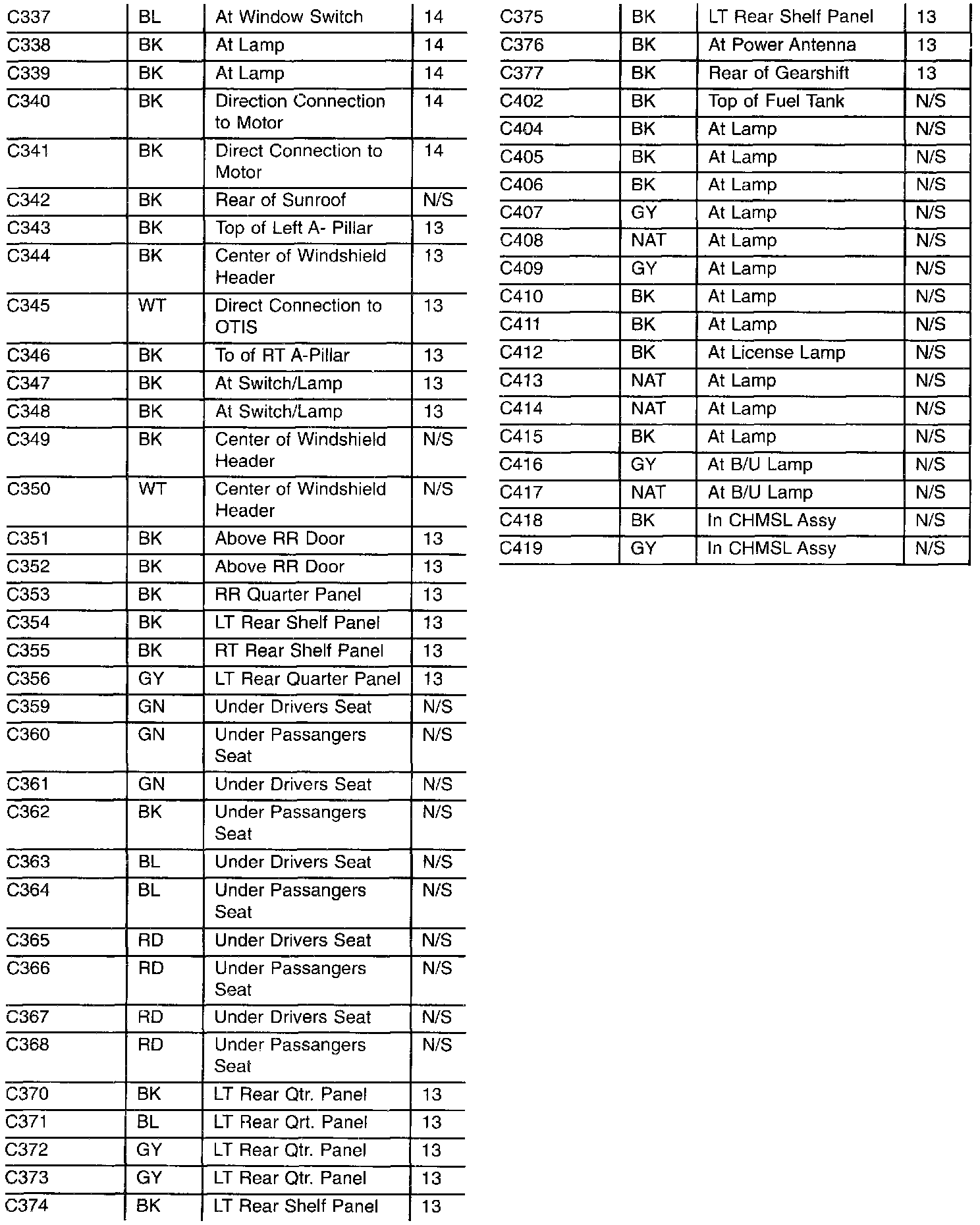 Connector & Ground Locations Index