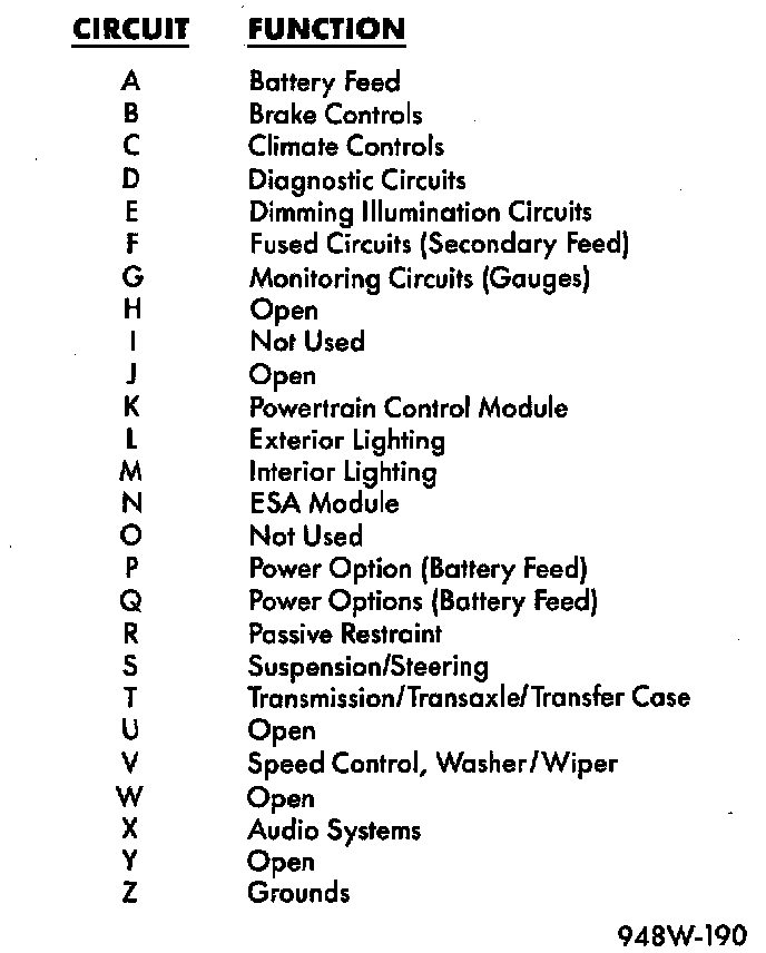 All circuits in the diagrams use an alpha/numeric code to identify the wire and its function. To identify which circuit code applies to a system, refer to the Circuit Identification Code Chart. This chart shows the main circuits only and does not show the secondary codes that may apply to some models.