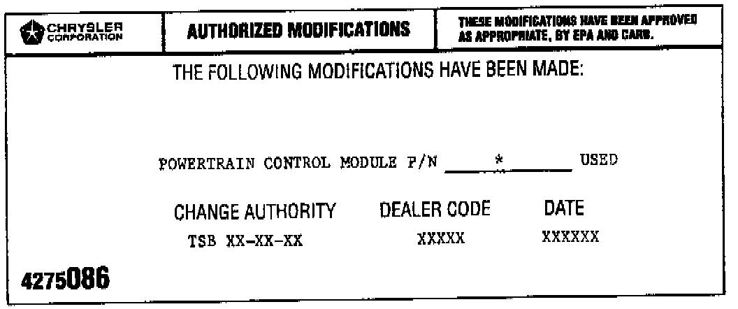 9. Type the necessary information on the "Authorized Software Update" label, P/N 4669020. Attach the label to the PCM and cover the label with the clear plastic overlay.