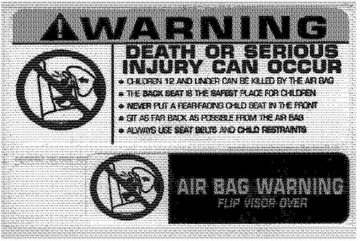 Four labels are required for every vehicle (two labels per sun visor). Each air bag warning label sheet contains one large label and one small label, as shown above. The following instructions for mounting the labels onto the sun visors also appear on the back of the label sheet. To ensure proper bonding of the labels, please warm up the interior of the vehicle to at least 50° Fahrenheit.