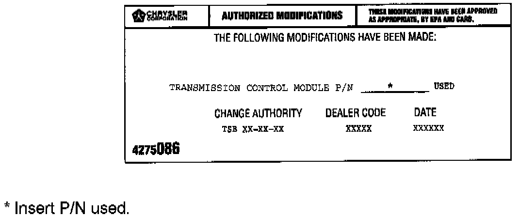 10. Type the necessary information on the "Authorized Software Update Label" and attach it to the TCM and cover label with a clear plastic sticker.