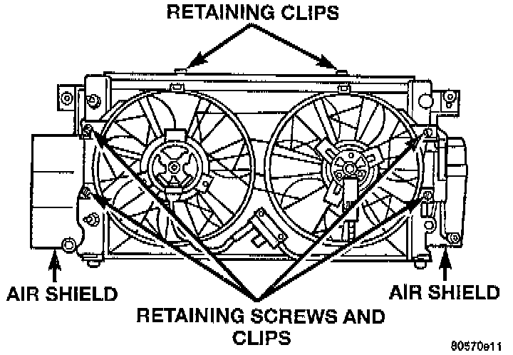 2. Remove upper radiator crossmember. Refer to Cooling System.