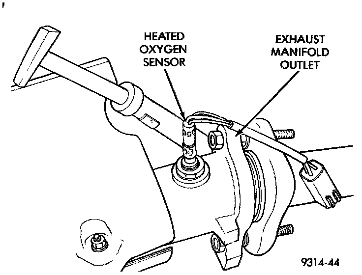 The upstream oxygen sensor threads into the outlet flange of the exhaust manifold (Fig. 13) or (Fig. 14).
