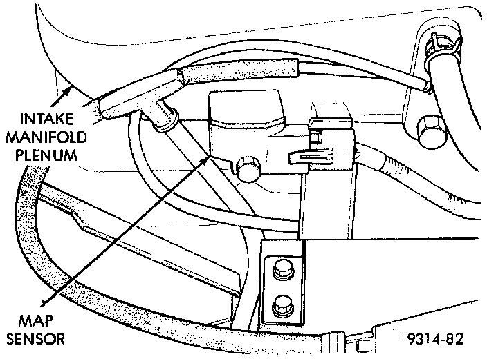 The MAP sensor mounts to the drivers side of the intake manifold plenum (Fig. 18). The Map sensor must be in the horizontal position.