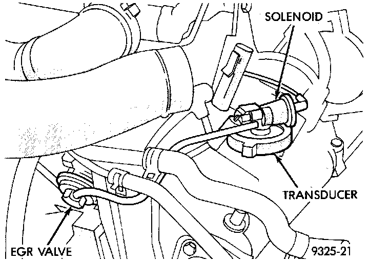The electronic EGR transducer contains an electrically operated solenoid and a back-pressure transducer (Fig. 2). The Powertrain Control Module (PCM) operates the solenoid. The PCM determines when to energize the solenoid. Exhaust system back-pressure controls the transducer.