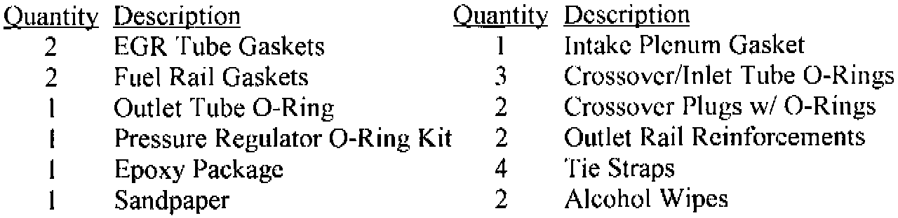 A. Fuel Rail O-Ring and Reinforcement Package (Required for ALL vehicles):