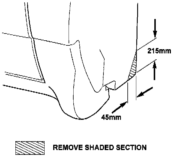 2. Using appropriate knife, tin snips or saw, trim front splash shield as indicated in drawing.