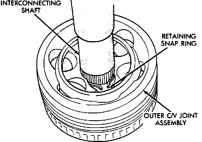 4. Spread retaining ring and slide CV joint assembly off interconnecting shaft.