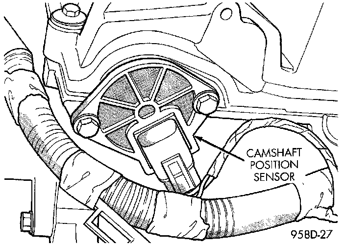 15. Check the electrical connections at the camshaft position sensor and engine coolant temperature sensor.