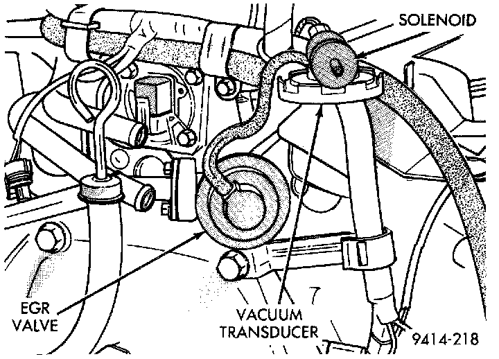 16. Check the electrical connector at the Electronic EGR Transducer. Inspect the vacuum and back pressure hoses at the solenoid and transducer for leaks.