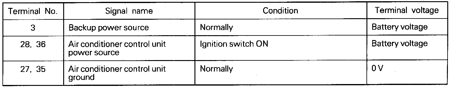 Inspection of Air Conditioner Control Unit Power Source Circuit