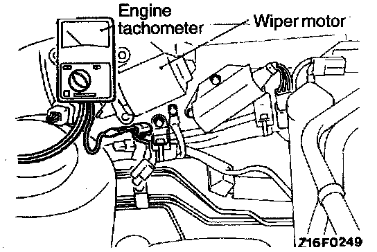NOTE: For tachometer inspection, use of a fluxmeter-type engine tachometer is recommended. (Because a fluxmeter only needs to be clipped to the high tension cable.)