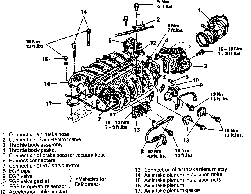 Fig. 11 Intake Air Plenum Replacement. DOHC Except Turbocharged: