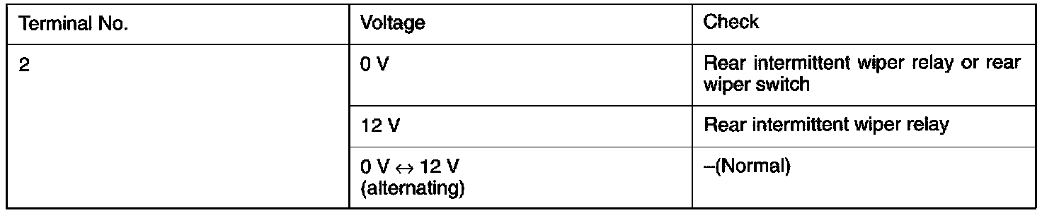 - Check terminal voltage at the rear intermittent wiper relay energized.