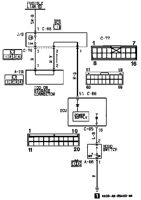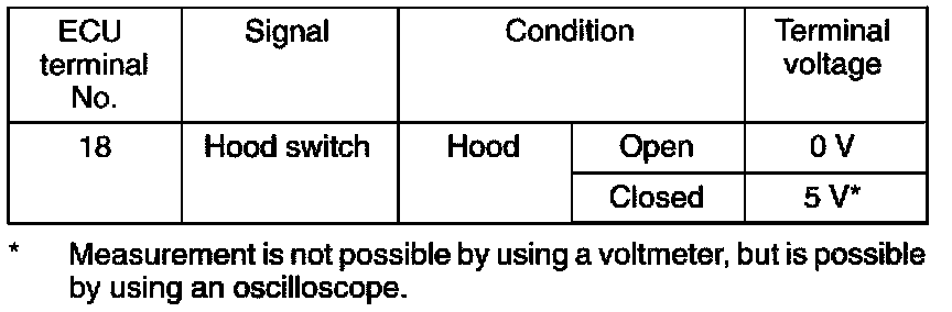 When the hood is closed (the hood switch is switched OFF), HIGH-level signals are sent to the ECU: