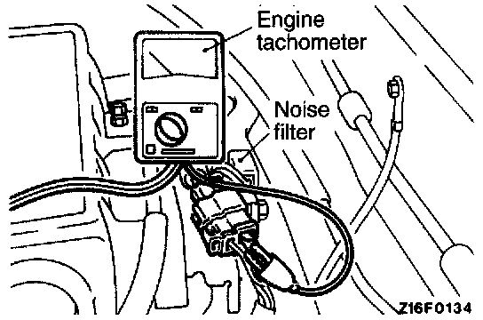NOTE: For tachometer inspection, use of a fluxmeter-type engine tachometer is recommended. (Because a fluxmeter only needs to be clipped to the high tension cable.)