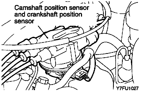 The camshaft position sensor is located within the distributor assembly.