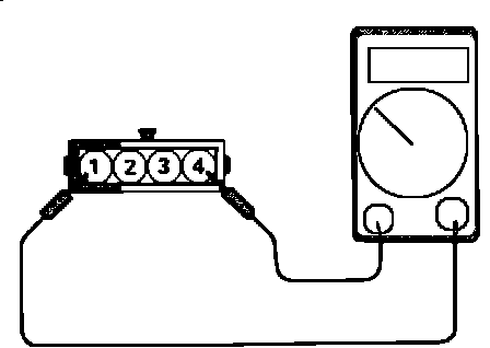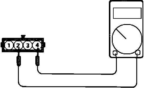 3. Connect a pointer type ohmmeter between terminal 4 (sensor ground) and terminal 2 (sensor output).