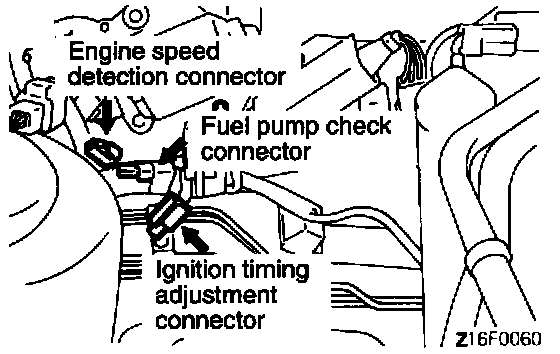 Engine Speed Detection, Fuel Pump Check And Ignition Timing Adjustment Connector: