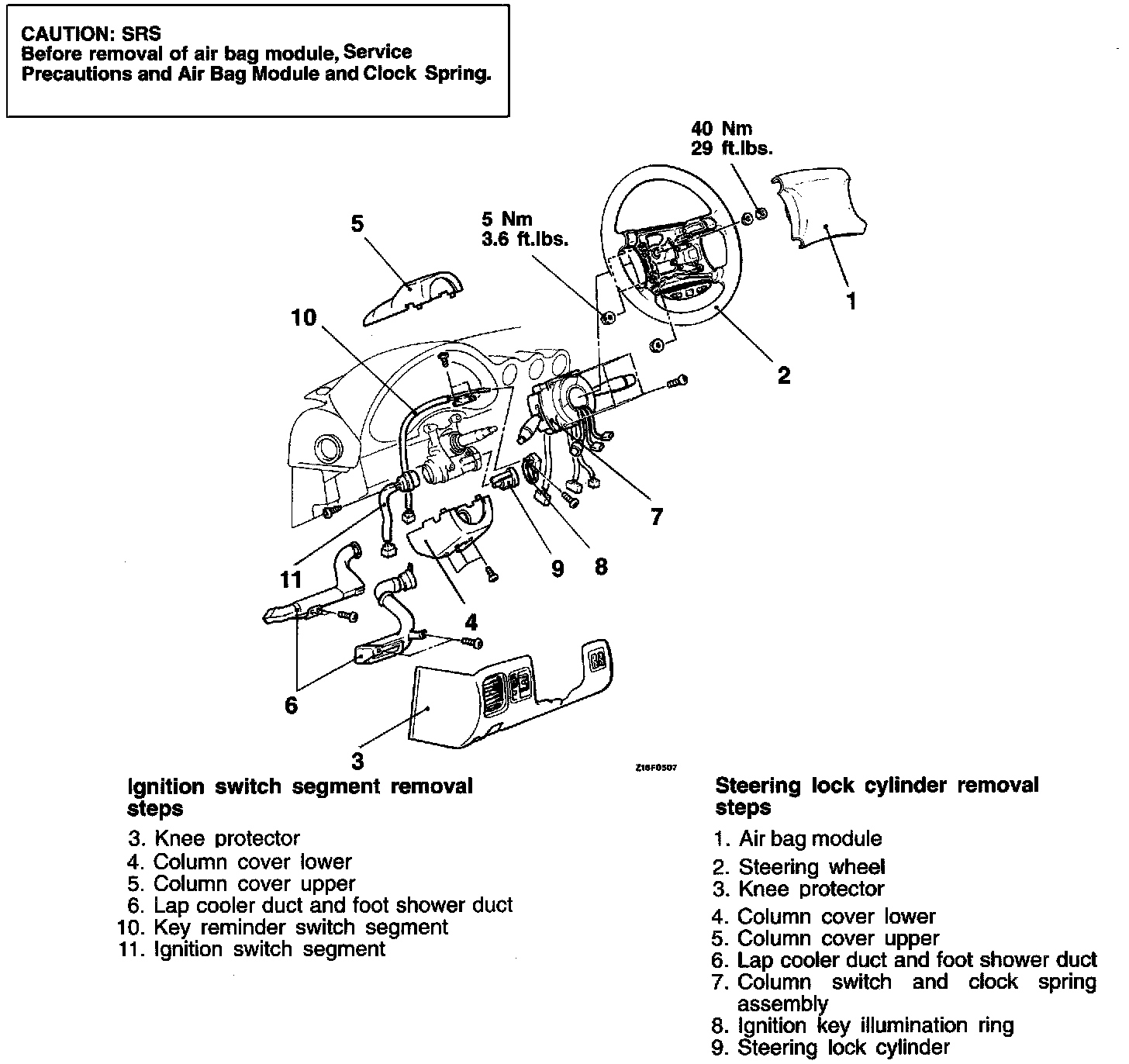 CAUTION: Before removal of air bag module, refer Service Precaution and Air Bag Module and Clock Spring.