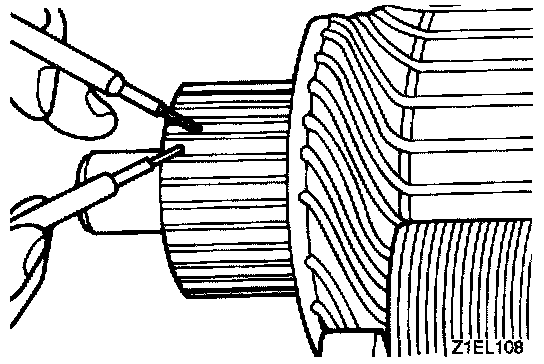 Check the insulation between the armature coil cores and the commutator segments. They are normal if there is no continuity.
