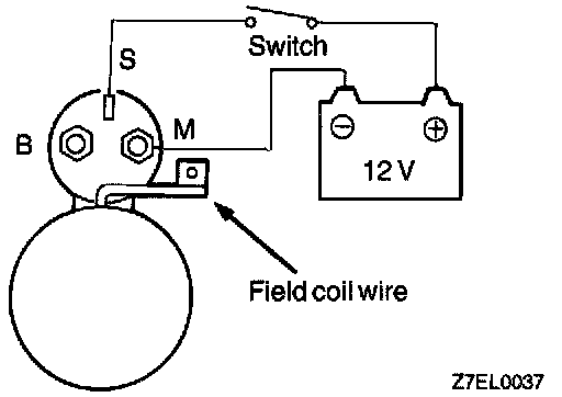 1. Disconnect field coil wire from M-terminal of magnetic switch.