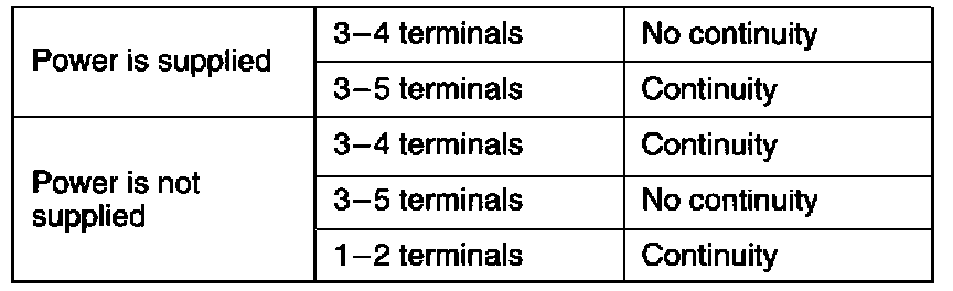 Starter Relay Continuity Table: