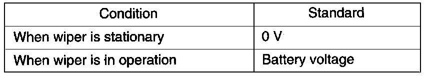 2. With the intermittent wiper relay connected to the wiring harness connector, let the wiper operate intermediately and check the voltage at terminal (2).