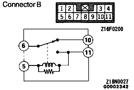 1. Check to ensure that there is continuity between terminals (5) and (11) and between the terminals (6) and (10), and that there is no continuity between terminals (6) and (11).