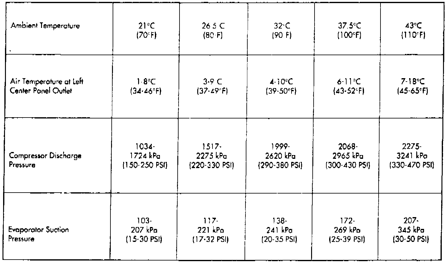 7. If the discharge air temperature fails to meet the specifications. Refer to the System Charge Level.