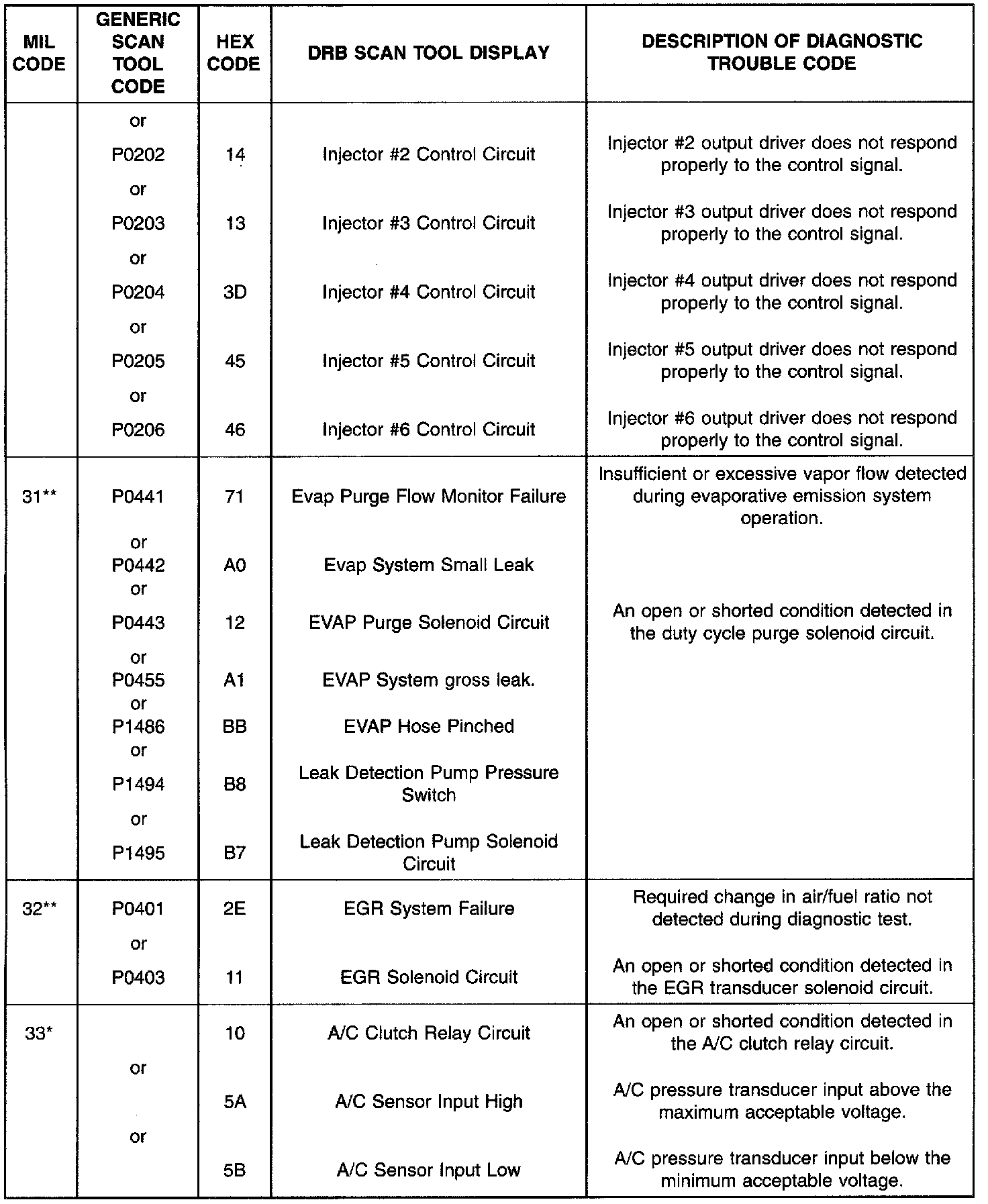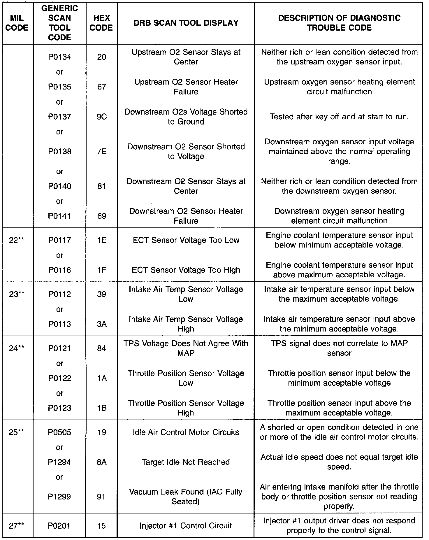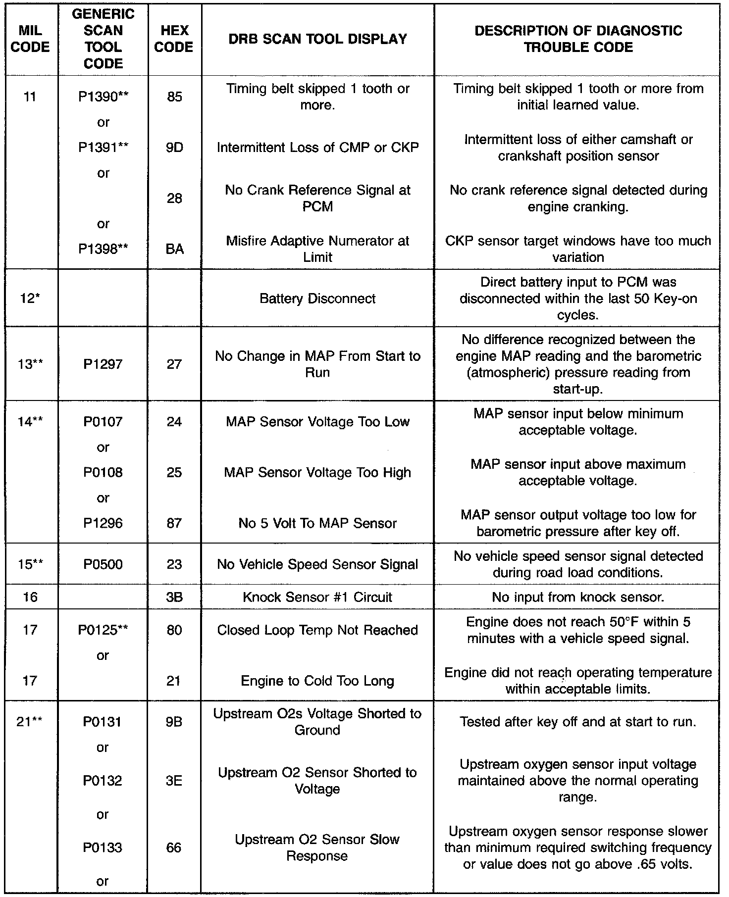 ** Check Engine Lamp (MIL) will illuminate during engine operation if this Diagnostic Trouble Code was recorded.