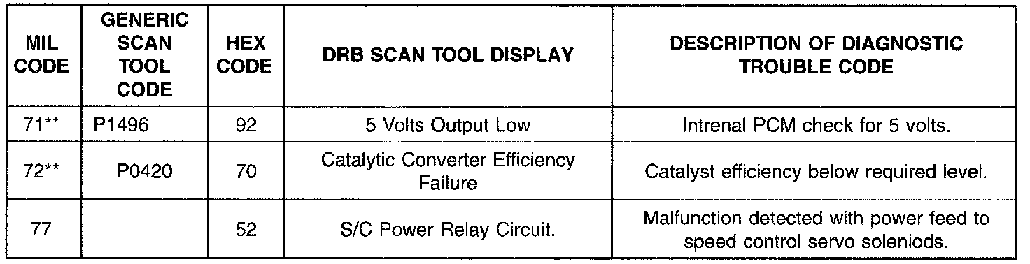 * Check Engine Lamp (MIL) will not illuminate if this Diagnostic Trouble Code was recorded. Cycle Ignition key as described to read trouble codes and observe code flashed by Check Engine lamp.