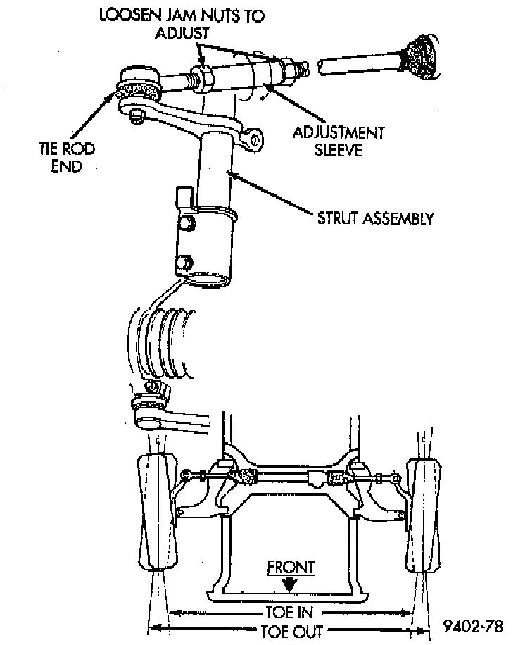2. Front Wheel Toe Adjustment within specifications for total toe.