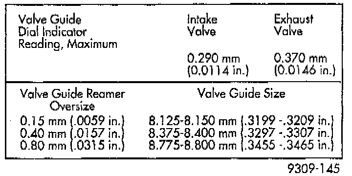 Valve Guide Specification Chart: