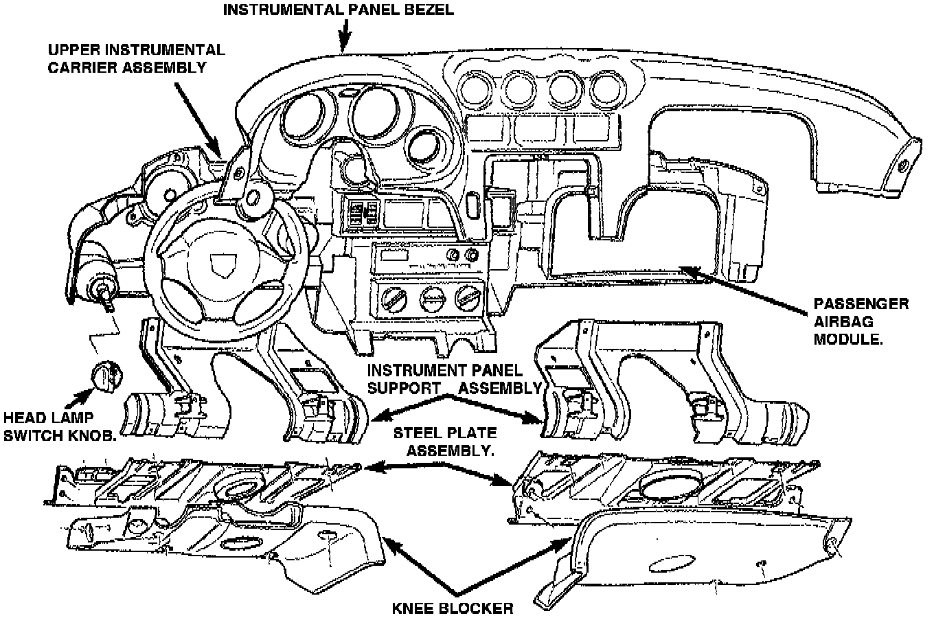 5. Remove instrument panel bezel. Use care not to break the locking tab.