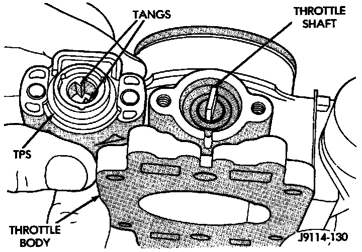 - The throttle shaft end of the throttle body slides into a socket in the TPS (Fig. 35).