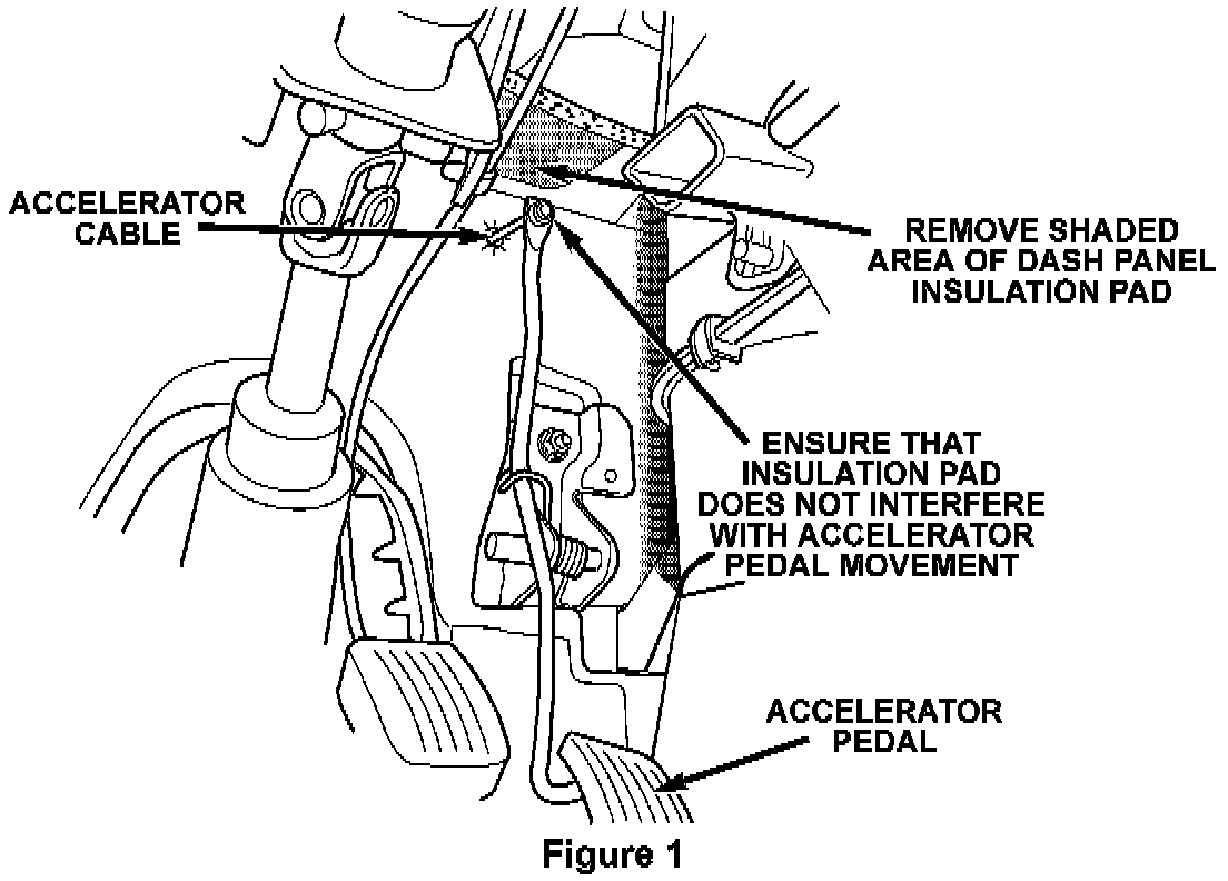 1. Locate the dash panel insulation pad under the instrument panel above the accelerator pedal (Figure 1).