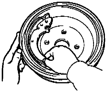 3. Chalk inner surface of brake drum and rub with shoe and lining assembly.