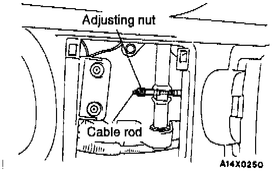 b. Loosen the adjusting nut to the end of the cable rod, thus freeing the parking brake cable.