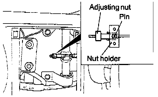 4. After making the adjustment, check that there is no play between the adjusting nut and the pin. Also check that the adjusting nut is securely held at the nut holder.